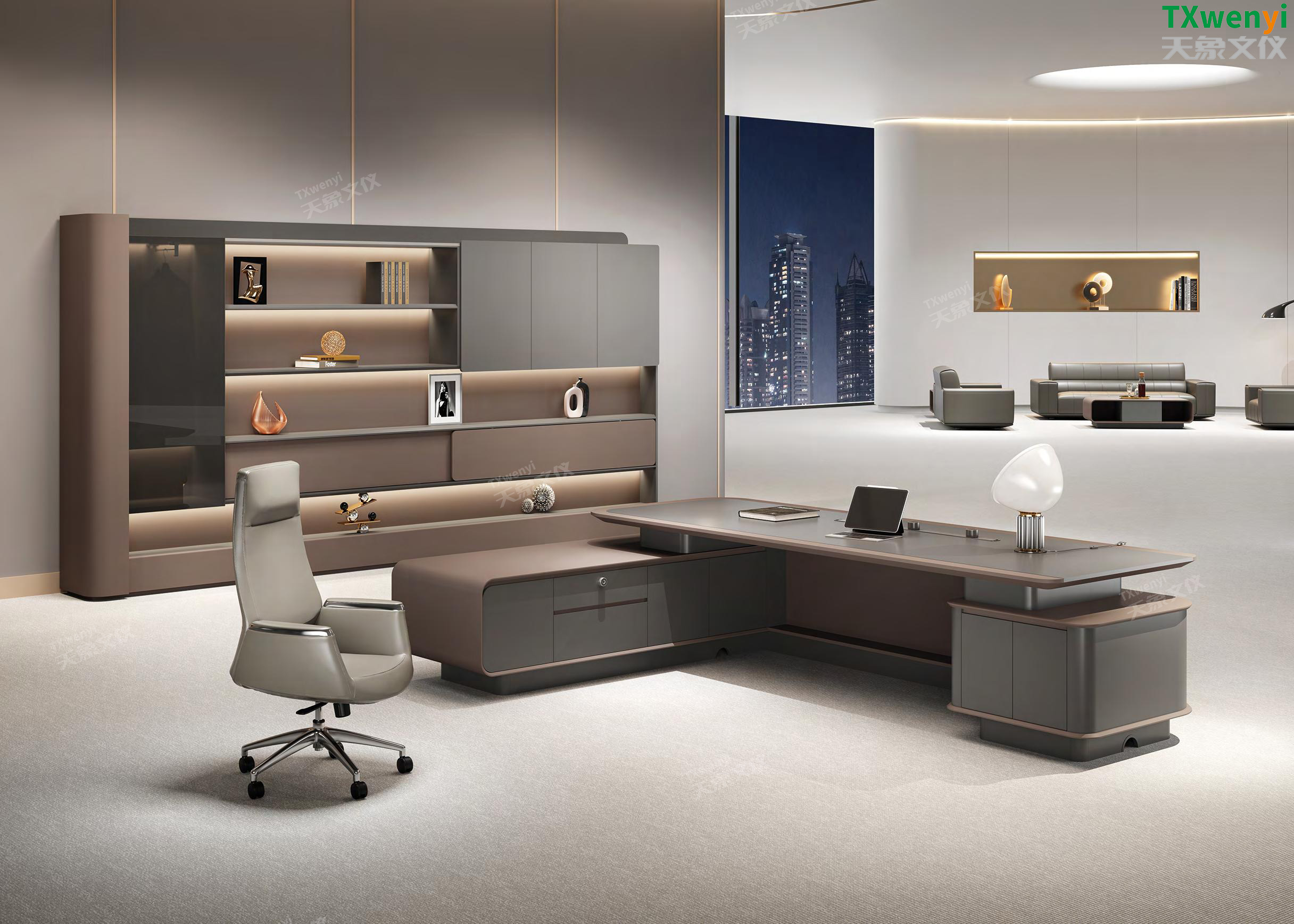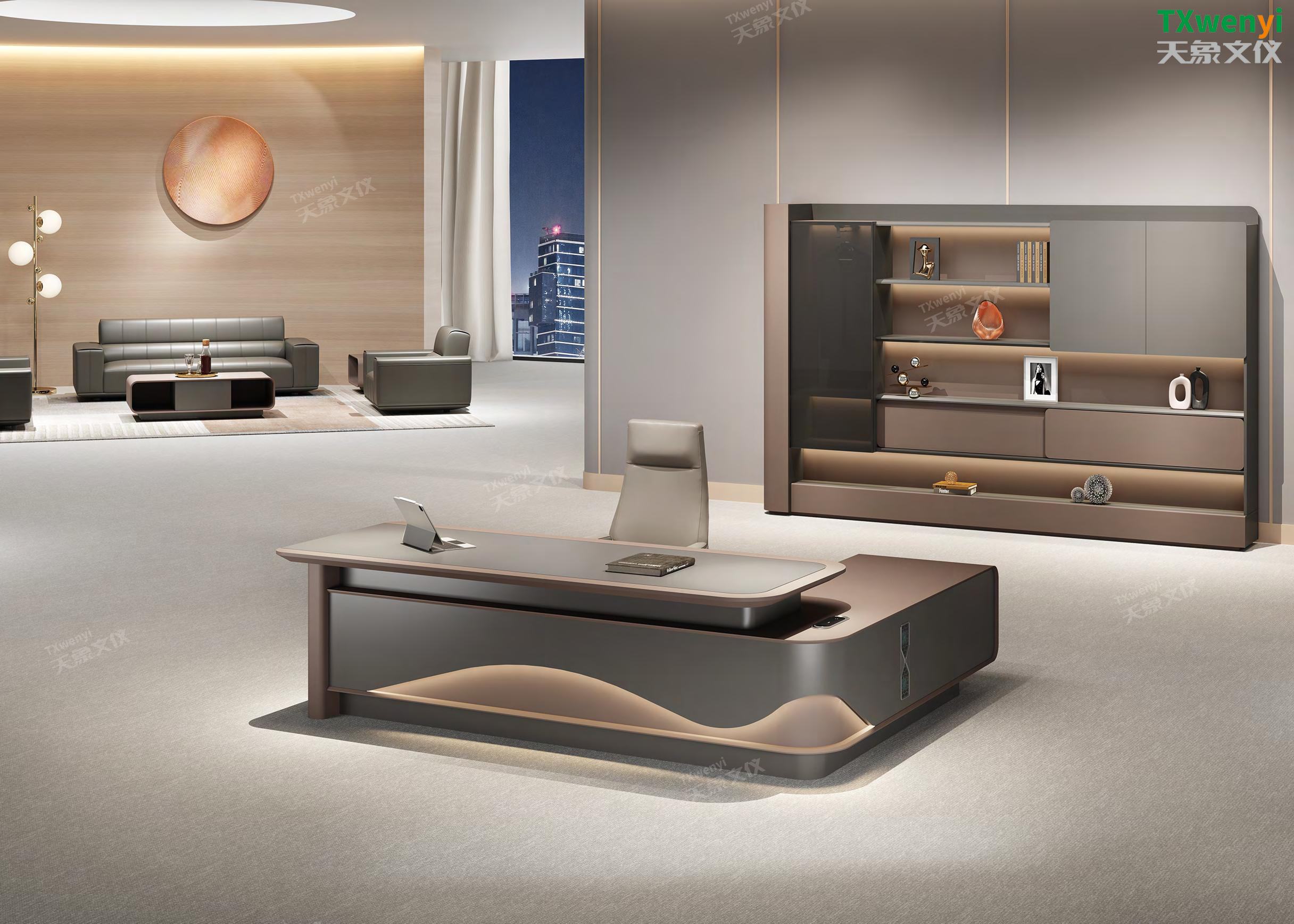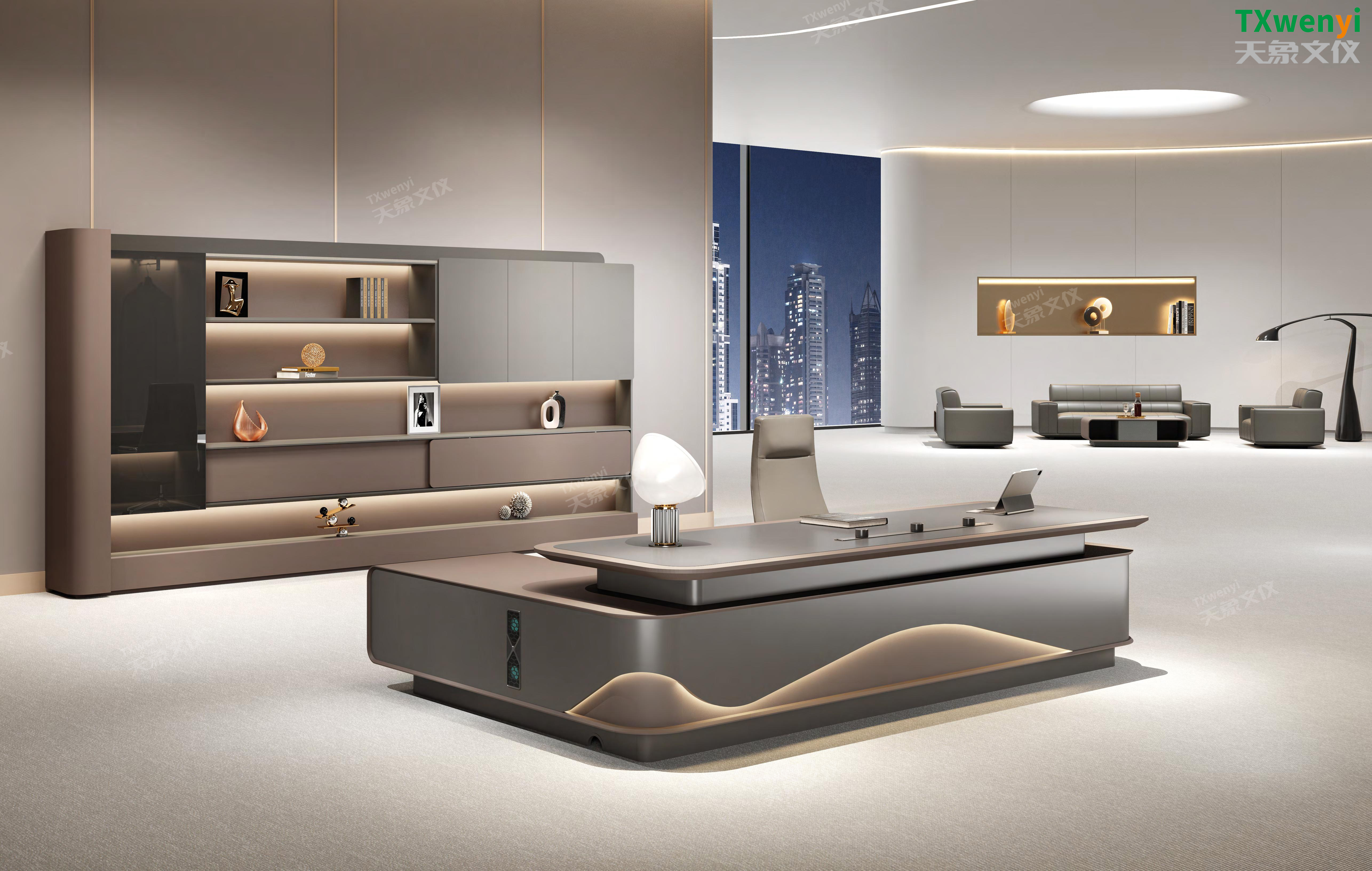 此定制辦公家具高端大氣的設計,別具一格,完美的造型展現出沉穩大氣的王者風范。獨特的造型,表現個人風格及追求創意的生活態度,這是一種內涵的外露,一種鑒賞的品味,一種貨真價實的選擇。